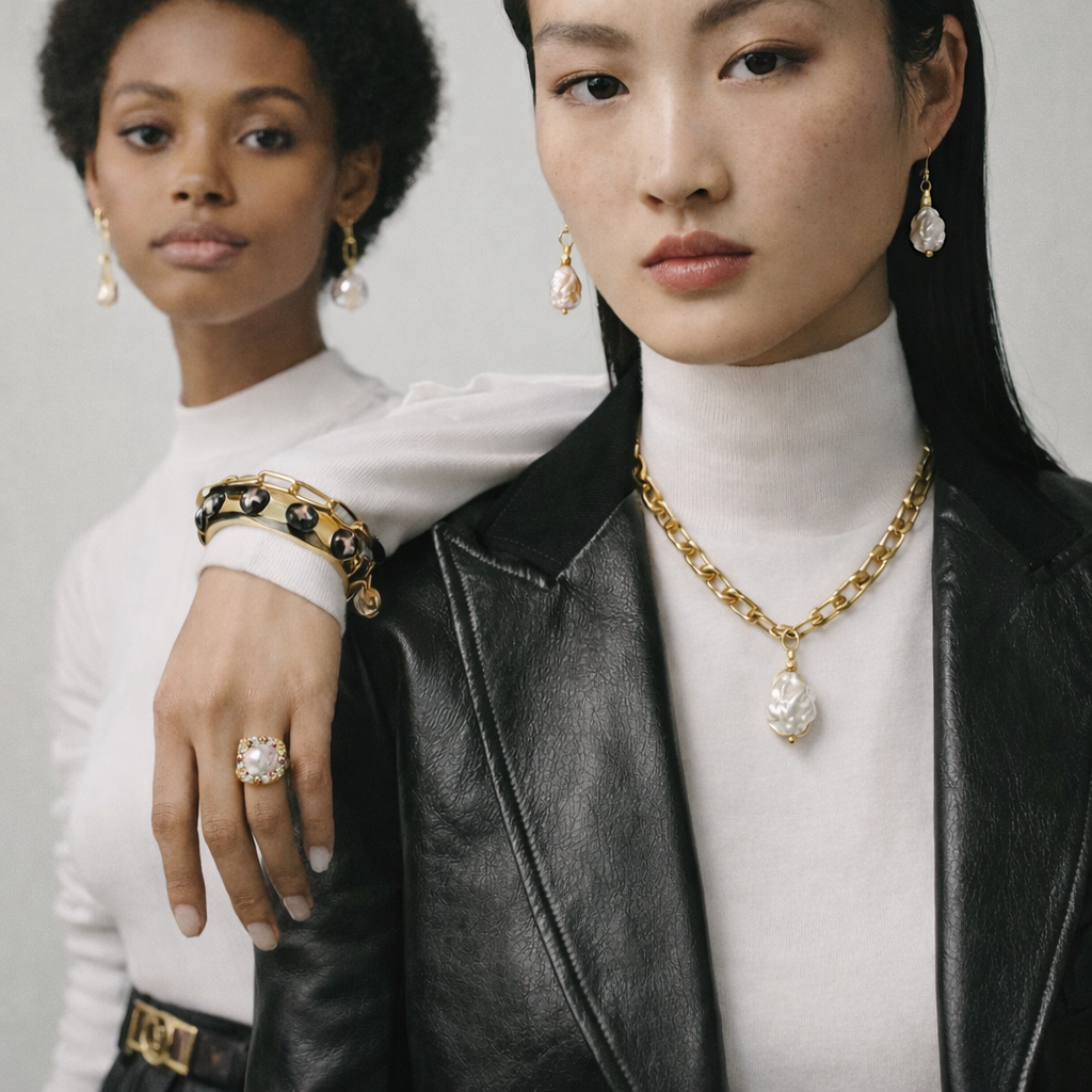 Thoughtfully selected pieces crafted with fine metals, natural pearls, and distinctive stones — designed to be worn often, mixed easily, and kept for years.
